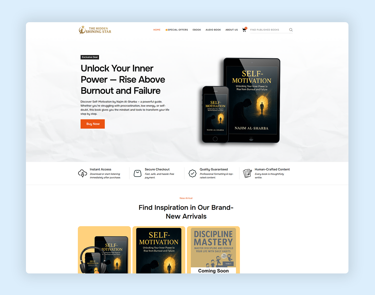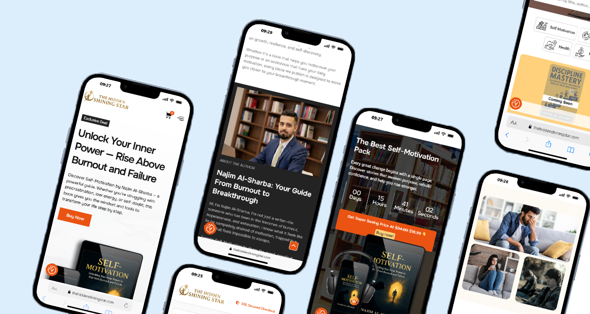 Designed and built a modern author website for self-help eBooks and audiobooks. Created an emotional, high-conversion layout to highlight book value, and limited-time deals for course-style funnel sales.