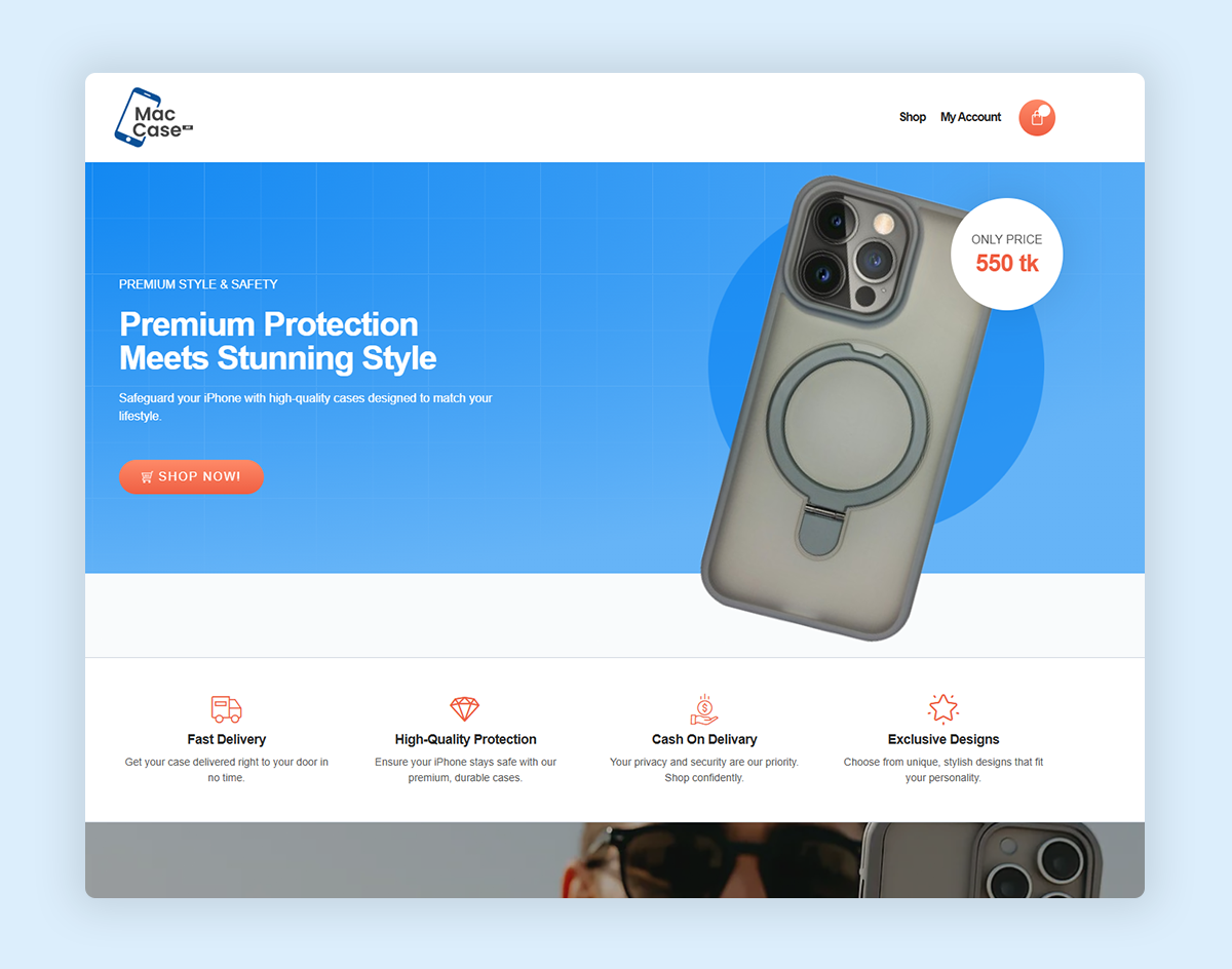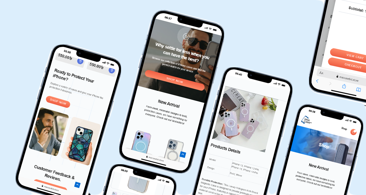 Custom WooCommerce store for premium iPhone cases. Focused on speed, mobile experience, and conversion-friendly with product filtering, review integration, and secure checkout for local buyers.